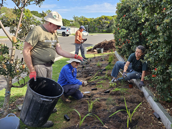 The submission was successful and UWG subcommittee members have proceeded with the project. Sarah Lawson is the Volunteer Project Officer and has been responsible for submitting the proposal and organizing the funding agreement with Noosa Council. Shaun Walsh has worked with the two property owners to design the verge gardens, in accordance with council specifications, and help choose suitable plants. Shayan Barmand, council’s Sustainability and Climate Change Coordinator, facilitated the project and the partnership between Noosa Council and UWG. The ongoing plan is to use the gardens for education and demonstration purposes to showcase wildlife habitat and urban greening benefits.