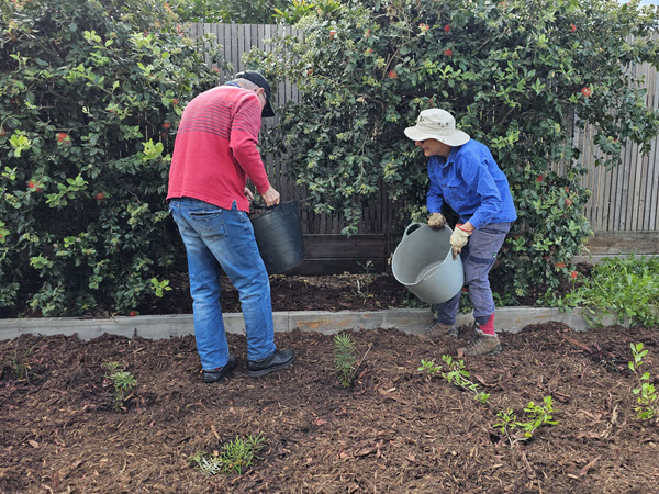 The first of the demonstration gardens was planted this month with a working bee of eight UWG subcommittee and member volunteers. Plants were sourced from Coolum Community Native Nursery and Noosa and District Landcare Nursery and soil and mulch from The Yard in Doonan.