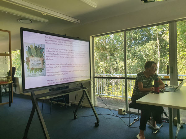 During the talk she covered the structure of Orchid flowers and how to identify the different Genus. We also learnt about the leaves and what to look for when there aren’t any flowers. The photos of the local species were excellent and beautiful to see. A highlight of the talk was learning about the fascinating ways Orchids pollinate.