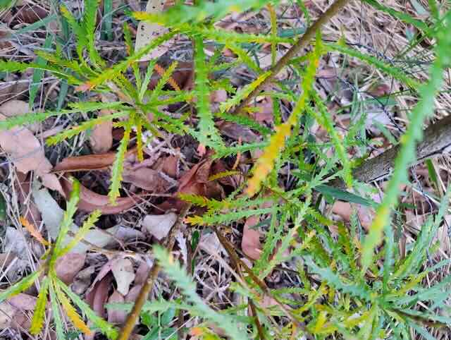 Banksia spinulosa var. collina, (Hairpin Banksia – small dense shrub to 2.5metres), attracts many native species including Sugar Gliders, Honeyeaters, such as the White-naped Honeyeater, Yellow-tailed Black Cockatoos and also provides bush tucker.