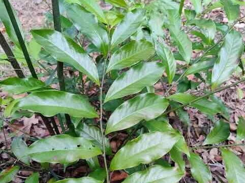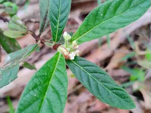 Psychotria loniceroides, (Hairy Psychotria – rainforest shrub to 3 metres), attracts birds especially the Green Catbird.